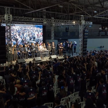 O Conexão COJADI também contou com a presença de autoridades, reforçando a relevância do evento na cidade e na região. A prefeita de Bauru, Suéllen Róssin, esteve presente acompanhada de sua mãe, a pastora Ana Rossim. Ambas participaram do início ao fim da programação, e a prefeita ainda teve a oportunidade de louvar a Deus durante o evento.